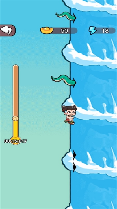 1、玩家操控经典神话角色,在充满奇幻元素的场景中冒险,躲避障碍向上攀爬。