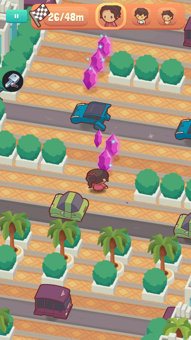 在过马路的时候只要没有车过来就快速的点击过去,不然就要换另一个人进行游戏。