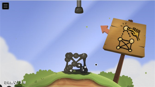 1、玩家需要利用粘粘球搭建一个大桥,记得把距离拉长一点,并且游戏加入了重力设定,粘粘球会直接垂下来。