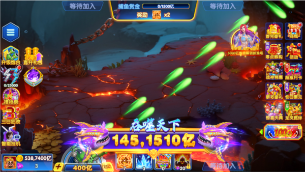 1、各种华丽炫酷的技能,捕鱼会收集一定的能量值,能量值满后可以使用一次终极技能全屏攻击。