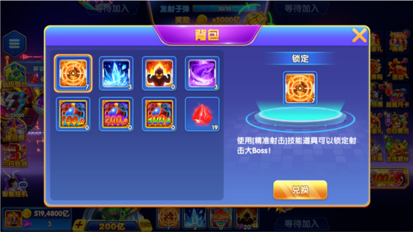 锁定/冰冻:针对高价值鱼类(如黄金鲨、金蟾)使用,可冻结目标并提升命中率。