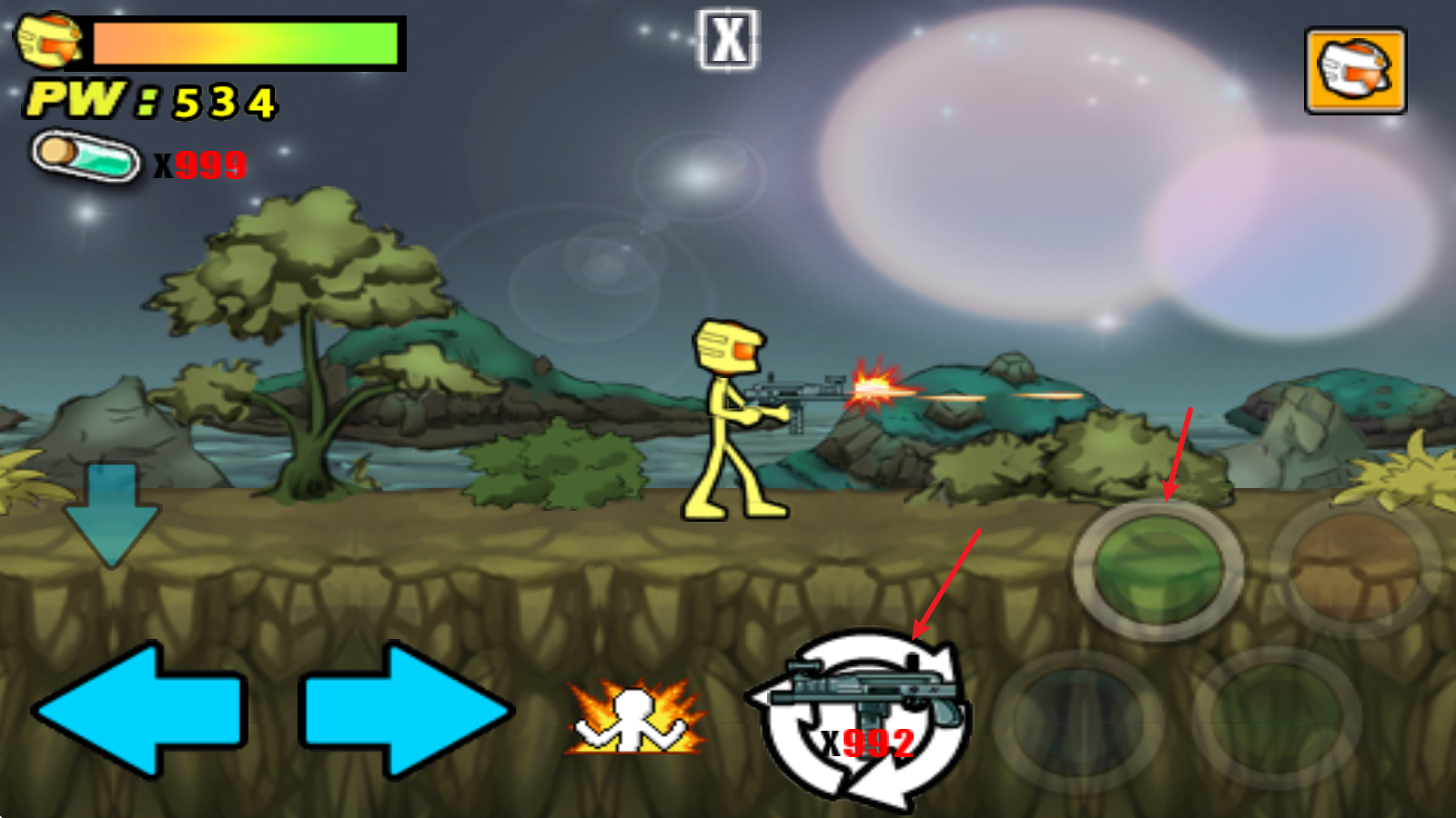3、点击下方的切换按钮可以换到其他武器,并且点击出现的新按钮即可射击。