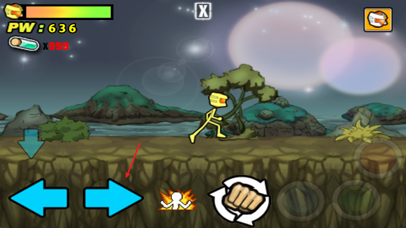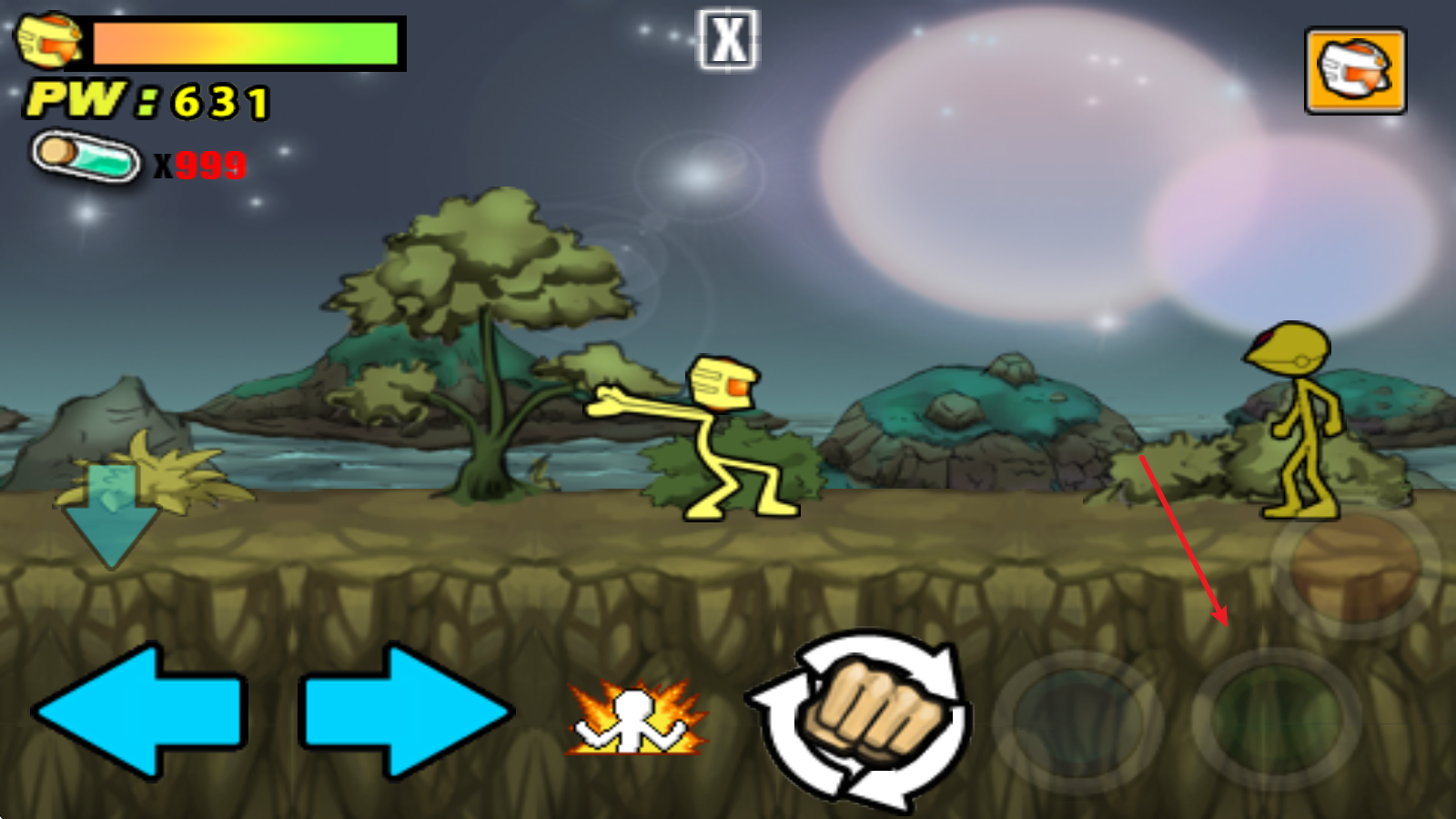 2、右侧的蓝绿红三个按钮分别代表了踢、拳、跳。