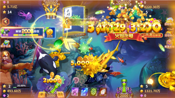 得分:击中鱼类得分,连击有额外奖励,捕获特殊鱼、用道具灭鱼也获高分。