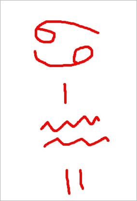 符号应该横过来看”→“ 巨蟹座的符号 - 水瓶座的符号 = ”→“0722-0218=0504”→所以密码是“0504”→“得到六角形金属把手”(新关键词)