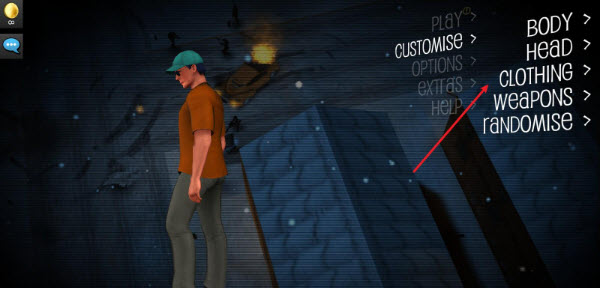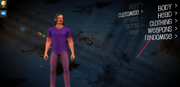2、出现的五个选项从上到下分别为身体、头部、衣服、武器和随机。