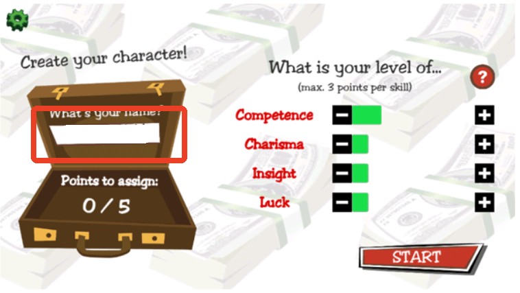 2、然后输入自己的游戏名,然后选择属性,点击 start 开始;