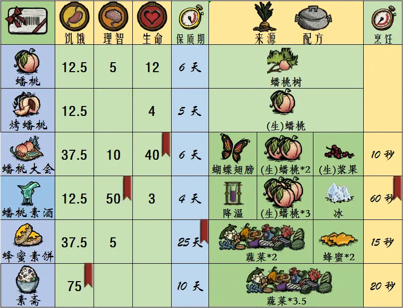 爱好瓜果:吃果度≥1的食物,额外恢复6理智。肉类食材至吸收20%,肉类料理只吸收80%,吃所有荤菜时都会说“酒肉穿肠过。”