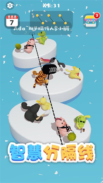 1、超萌超解压的休闲益智游戏,你的任务是观察形势、巧妙画线,在蒜鸟间世界大战爆发前将它们分开。