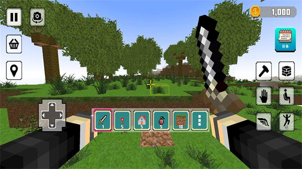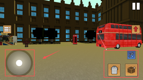 2、左侧为虚拟摇杆控制移动,右侧有挖掘、建造、跳跃按钮,滑动屏幕可调整视角。