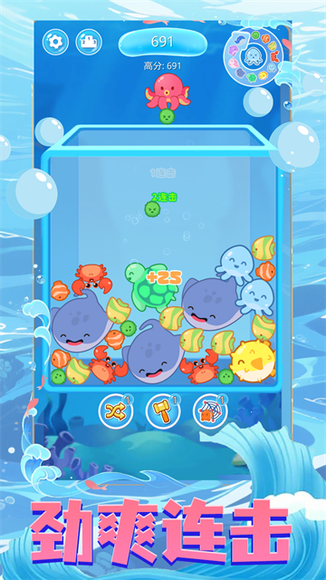3、消除反馈清晰,海洋生物消除时会有生动特效与音效,每一次成功消除都能带来满足感,增强游戏趣味性。