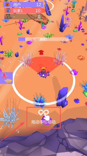 1、进入游戏后通过触屏滑动控制章鱼角色移动,准确决定移动的具体方向和行进速度。