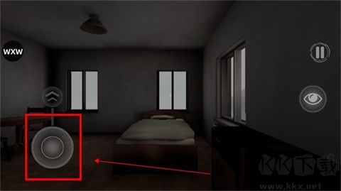 3、左下角轮盘为方向移动键盘;另外按住屏幕后上下左右移动可变换视角;