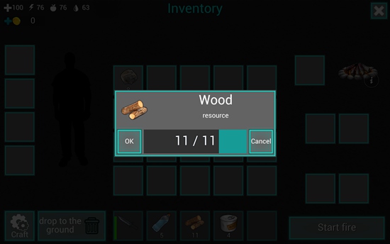 12、不过现在我们首先要做的还是一个火堆,制作一个火堆需要7个木头,点击火堆,然后点击右下角的“Craft”,即可制作出来。