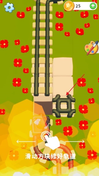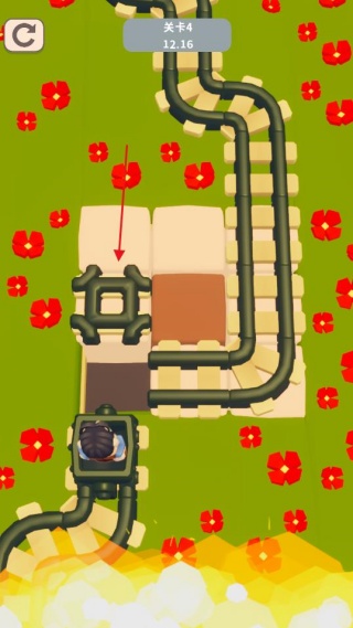 2、互动方块到空白位置,将这个多角度的铁轨完成连接任务,最终通过游戏的关卡。