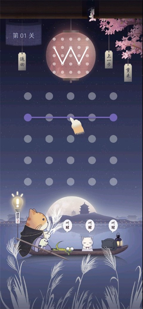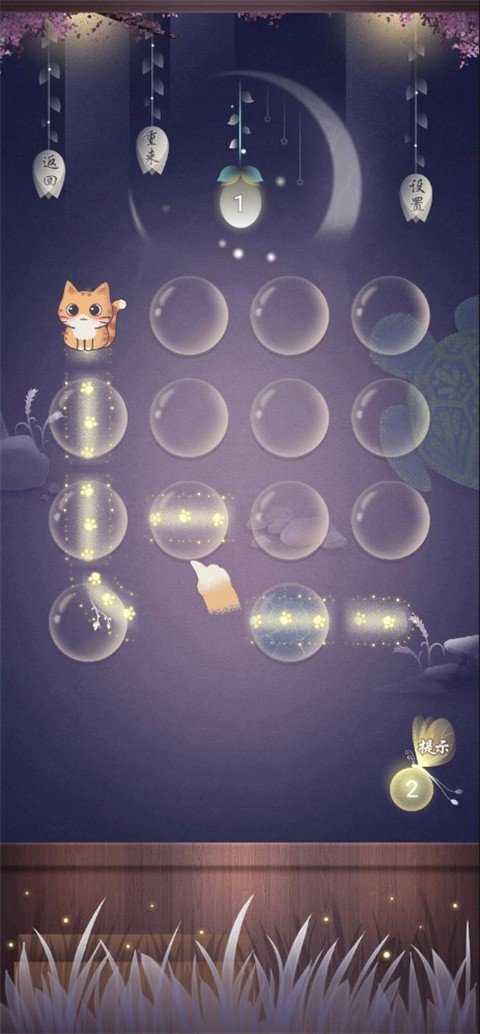 7、进到寻梦游戏,玩家需要将拖动水珠连成一条路让小猫通过;