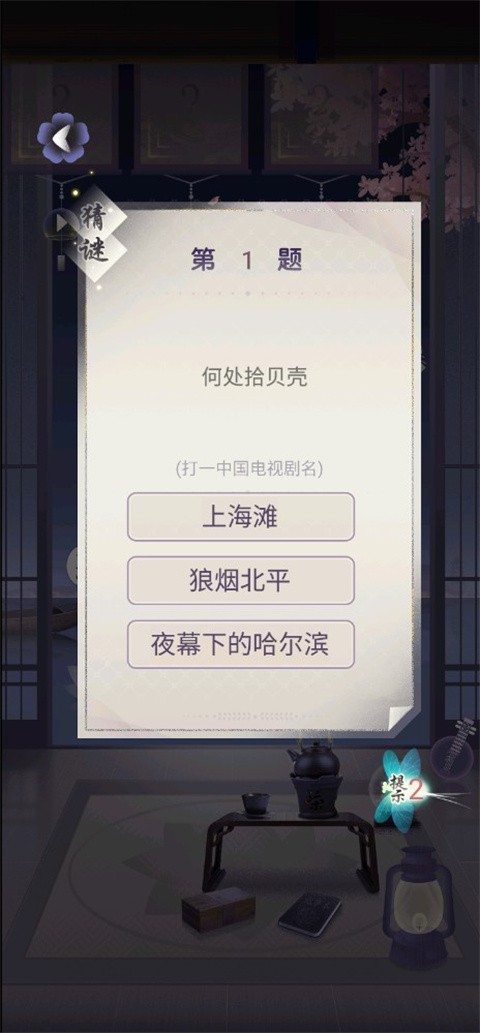 6、点击湖面上的莲花可以进行猜谜游戏,猜不出还可以点击右下角的“提示”哦;