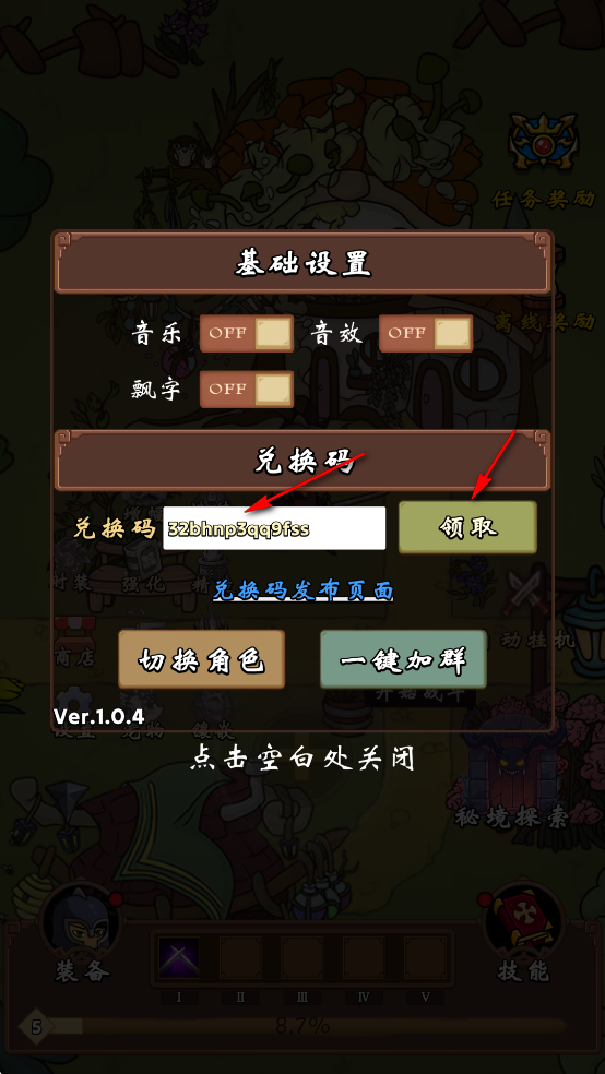 输入兑换码,点击【领取】