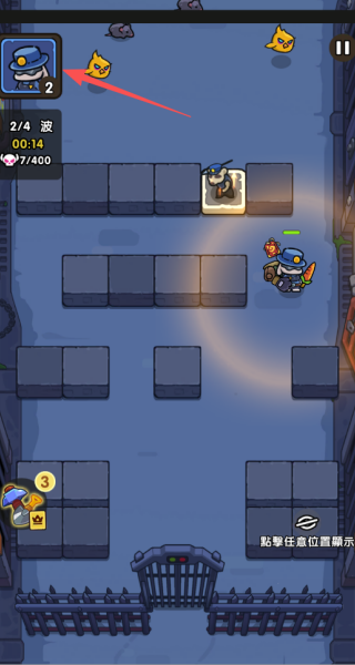 4、左上角这个图标下的数字,代表着我们可以增加两个增益角色,你可以选择放置。