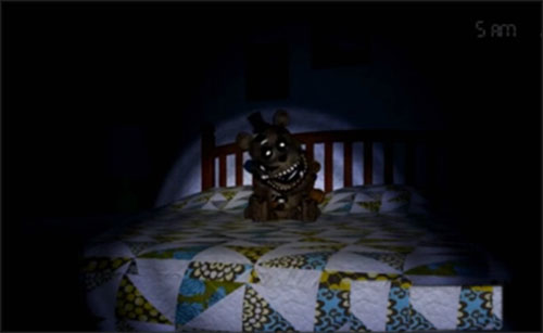 首先该游戏的场景不是熟悉的 Freddy 的披萨店,而是在一间陌生的屋子里,主角也换成了一个被困在屋子里的熊孩子,玩家要做的还是要帮助熊孩子存活到早晨6点。