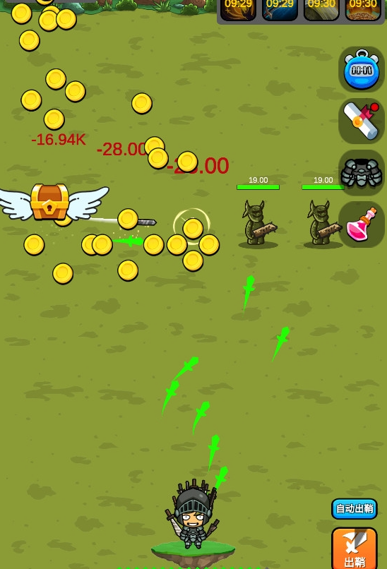 1.下载游戏后可以点击屏幕,快速的出剑,绿色的箭头需要自己点屏幕出现。