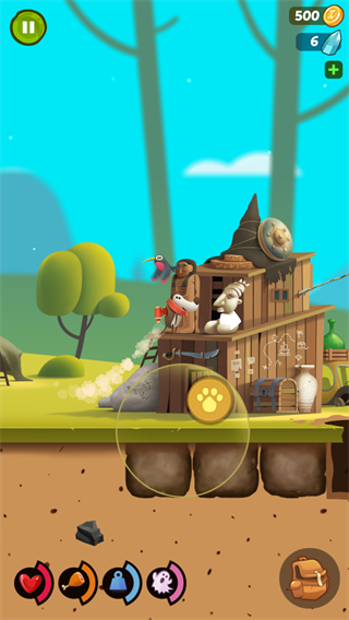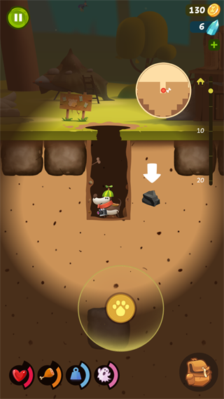 在游戏一开始,玩家可以在地下的浅层进行探索,不过你要是想往下的话要强化狗狗,强化要金币,而金币要通过挖东西卖钱获得,不断挖东西是需要消耗饥饿值,饥饿值掉的很快,而且吃一次要50金币啊喂!所以玩家要注意劳逸结合哦