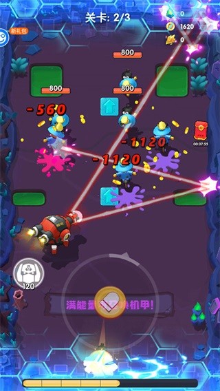 2、遇到敌人太多还可以召唤机甲进行战斗