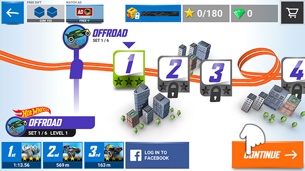 2、然后我们可以看到,这个模式是闯关类型的,我们先开始第一关的挑战,点击右下角的【CONTINUE】按钮。