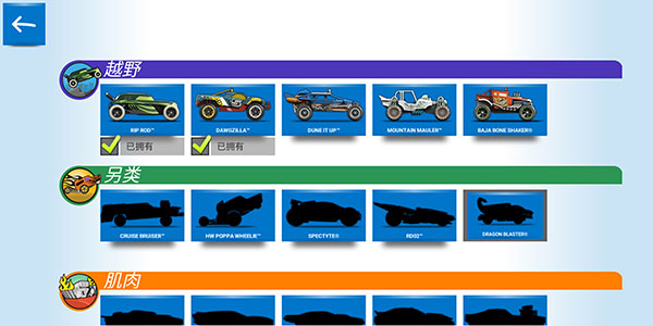 1、进入风火轮赛车游戏最新版,可以看到有三种模式可以选择,目前头两个还没解锁,因此先点击最后一个模式进行游玩。
