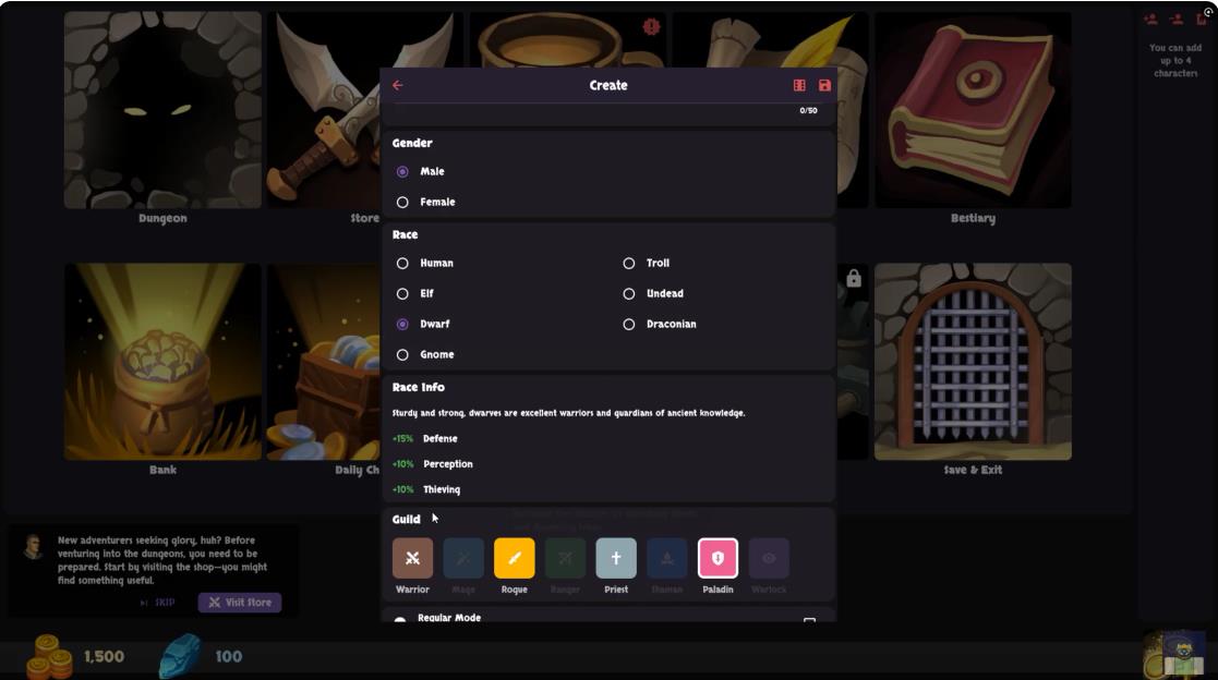 1、创建角色选择种族、性别、起始公会并自定义头像。