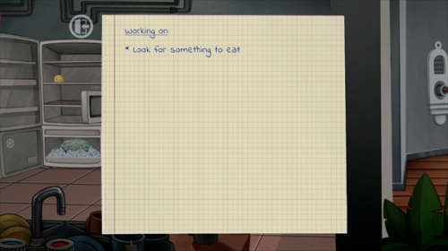 2、点击屏幕可以加快文字的速度来快速的推进剧情的发展,通过里面给出的目标任务去移动角色寻找完成任务获取食物。