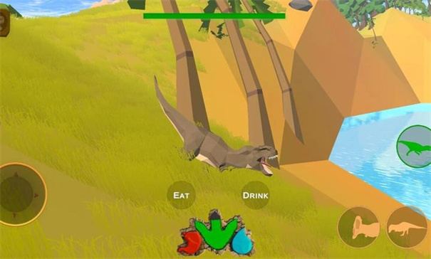 3.探索广阔的地图收集资源,小心遇到野生恐龙。使用陷阱和食物来提高驯服的成功率。
