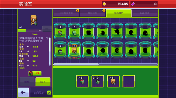 6、在特殊僵尸界面可以升级僵尸、配置僵尸