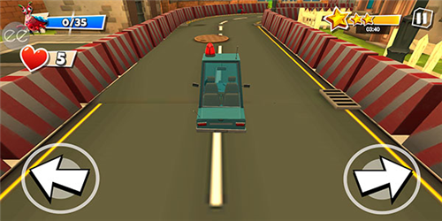 6、汽车时会自动加速前进的,玩家只需要通过点击左右两侧的箭头来控制车辆的方向即可。