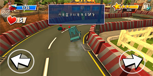 7、你在驾驶的过程中会见到堆在赛道上的盒子,我们要尽可能绕过它们,否则会损失生命值,也就是左侧爱心的数量。