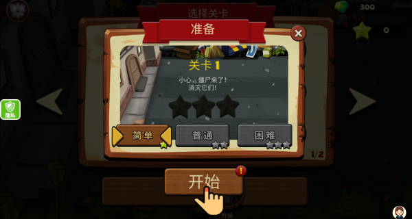 3、选择简单模式开启首次冒险,消灭来袭的所有僵尸。