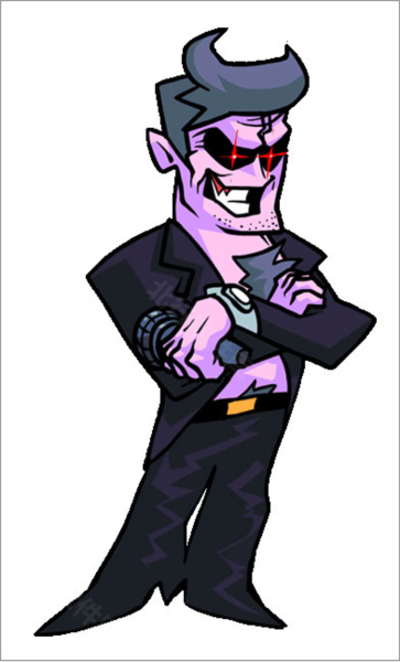 3.Daddy Dearest是GF的父亲,Mommy Mearest的丈夫。他是第一周的主要对手,也是第五周的对手之一。他曾是一名摇滚明星,不赞成女儿与Boyfriend的恋情。他的歌曲包括Bopeebo、Fresh和Dadbattle,并与Mommy Mearest共享歌曲Cocoa和Eggnog。Daddy Dearest外表带有恶魔般的特征,皮肤呈紫色,眼白为黑色,瞳孔发出红光,灰紫色的头发隐约像恶魔的角。他穿着敞开的黑色西装外套,不穿衬衫,露出灰色的胸毛,黑色裤子由一条带有金色扣子的腰带系着,左手腕戴着一块银表。下巴有胡茬,额头有印记,左手拿着麦克风。