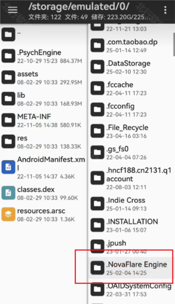 2.需使用MT管理器创建名为“.NovaFlare Engine”的文件夹,注意开头的“.”不可缺少。