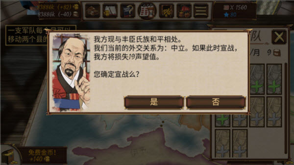 4、等到积攒到足够的实力就可以开始与其他势力宣战了。