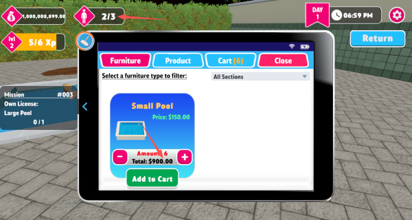 2、使用手机去订购各种的设施,然后将它们拿进乐园中,选择好地方进行建设。