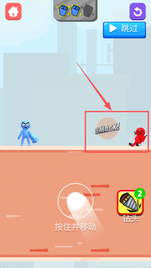 2、蓝色小人打出拳头后,如果打中红色小人会出现smack字样,这时可以继续按住白圈准备下一次攻击。