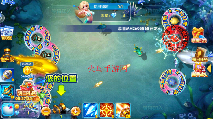 2、打鱼的时候注意鱼池中各种boss鱼、奖励鱼。