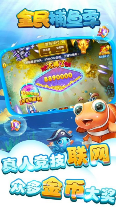 全民捕鱼季内购版本是一款真3D次世代街机捕鱼游戏,游戏耗时多年倾力打造,完美复刻经典街机捕鱼玩法,拥有精美的游戏画面,还添加了丰富的特色游戏内容,并且游戏中爆率高,活动福利足,可以给予玩家超棒的捕鱼游戏体验。