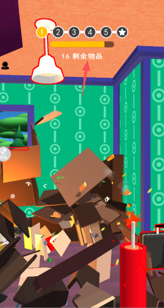 4、破坏的进度可以实时显示,看着房间从整洁到混乱,成就感满满还能解锁新道具与场景,持续激发探索欲。
