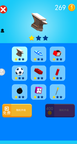 2、道具的种类很丰富,除了常规工具,还有奇葩道具如魔法棒还有巨型拖鞋,破坏方式千奇百怪,惊喜不断。