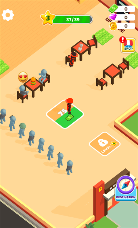 1、汉堡店Burger Please游戏中钞票是需要玩家控制角色进行获取的。