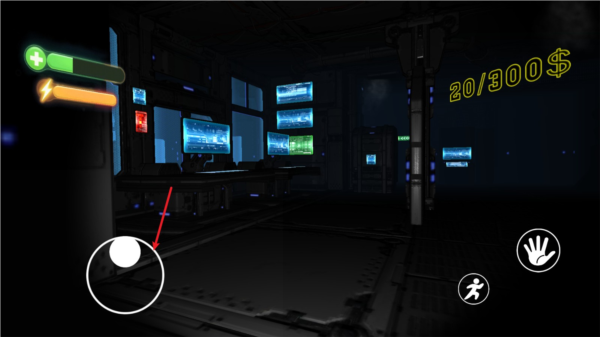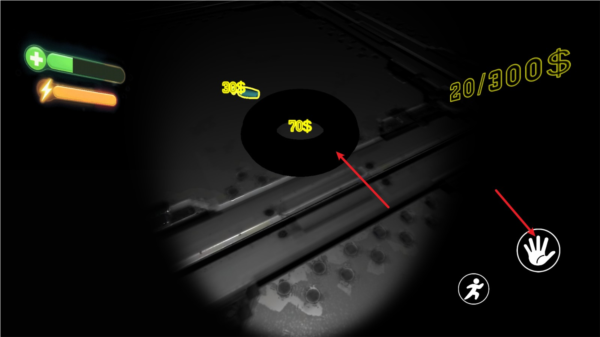 4、按住右侧的小手就可以拿起物品,然后向着起点处行动。