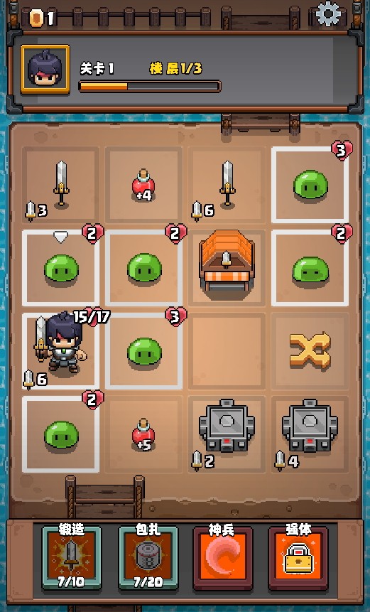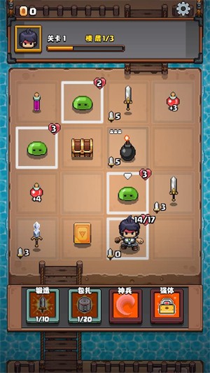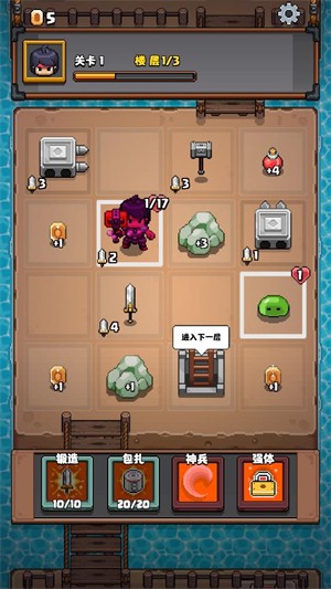 6、前往下一层击败更多的怪物获得金币,完成冒险来成为最厉害的英雄。