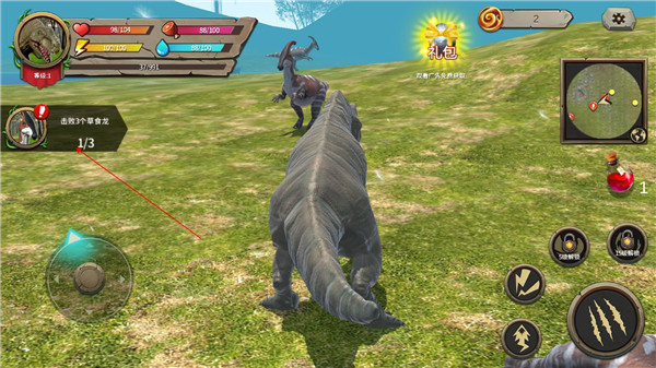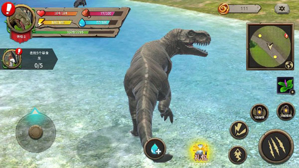 在游戏中,各位小伙伴需要走进森林中成为一只大恐龙来生活,不管遇到什么危险,都要想办法克服。在这里小伙伴们可以在探索这广阔的恐龙世界,这里还生活着各种各样的凶猛恐龙和动物,你会与之狭路相逢,玩家可以选择与之搏斗,厮杀,将其征服!当然也要审时度势,毕竟君子报仇十年不晚。体验在大自然中生存的艰难,更有趣的地方是,在这里你还可以找到你的恐龙伙伴,与你一同生存,一同战斗。