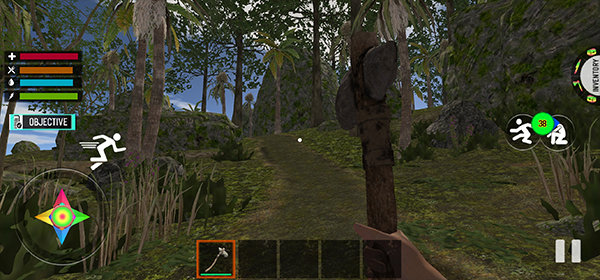 丛林游戏,而您正在收集物品来建造房屋,夜间生火,要小心,因为野生动物在您身后,它们可以猎杀您,也可以猎物。